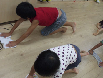 部屋の掃除などもみんなで協力して行っています。